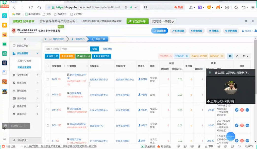 为进一步强化实验室管理工作意识,切实提升实验室安全信息化管理水平。4月27日,开云邀请上海万欣计算机信息科技有限公司工程师刘好奇对实验室安全管理平台的使用开展培训,教务处相关负责人、各二级学院实验室安全负责人、实训室管理员参加了培训学习。