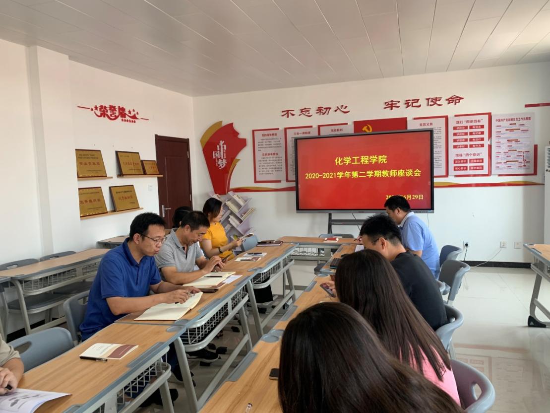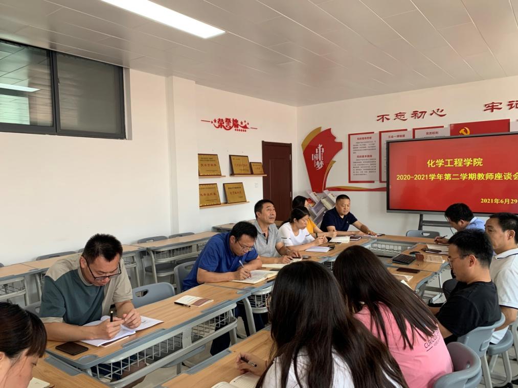 2021年6月29日,kaiyun官方网站入口化学工程学院在化学工程学院党员活动室召开了2020-2021-2教师座谈会。会议由化学工程学院朱冰院长和蔡庄红书记主持并面对面听取了大家的意见建议,化学工程学院专兼职教师代表15人参加了此次会议。