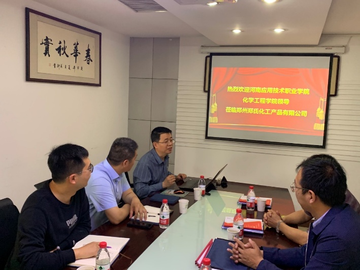 5月22日,开云化学工程学院朱冰院长、蔡庄红书记等一行四人赶赴郑州郑氏化工产品有限公司举行校企合作签约暨“驻企工作站”揭牌仪式。