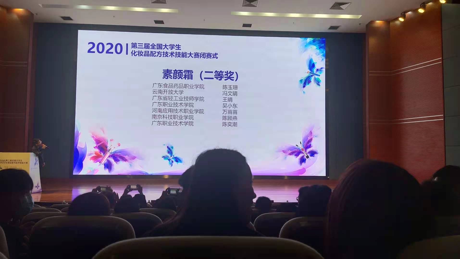 热烈祝贺开云化学工程学院19级化妆品经营与管理专业万苗苗、陈梦梦两位同学在2020年第三届全国大学生化妆品配方技术技能大赛中分别荣获个人理论知识竞赛一等奖,素颜霜实操项目个人二等奖,团体三等奖的好成绩!