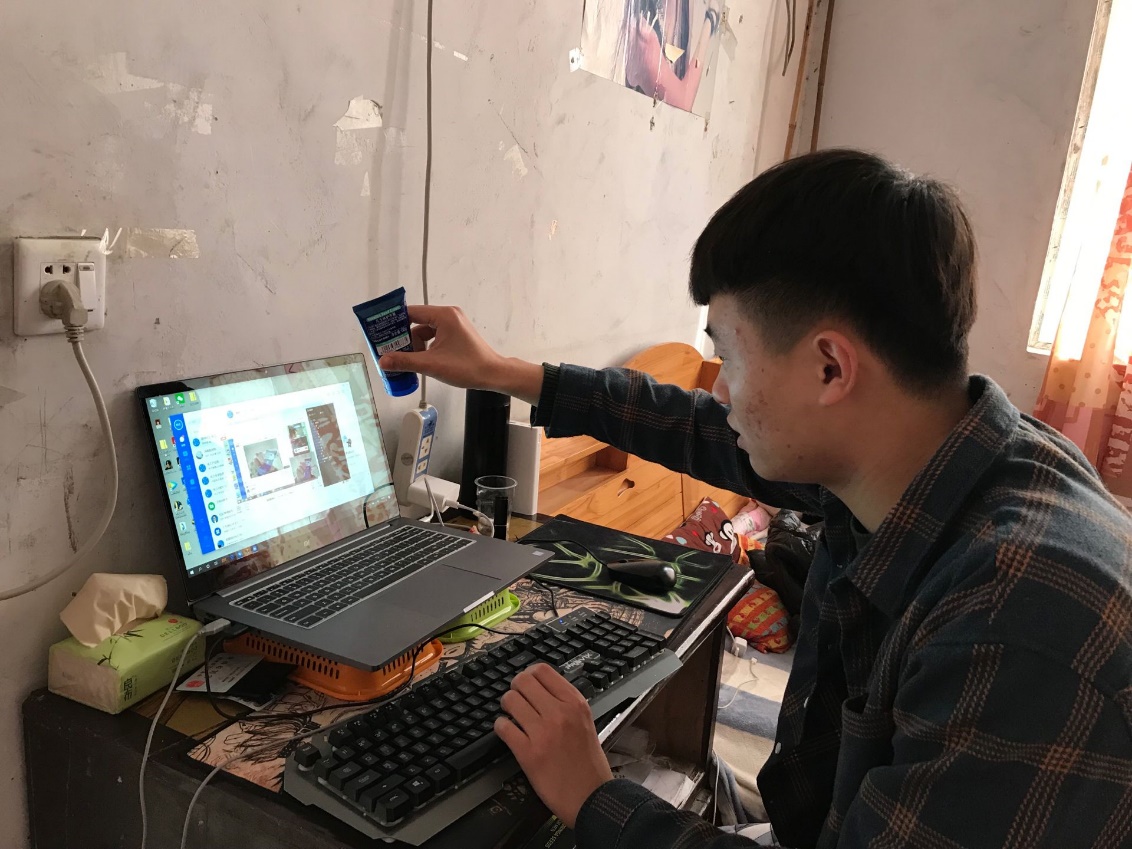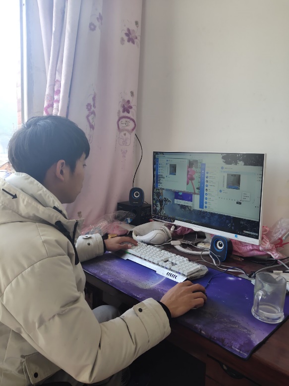 组图3 学生在家上课的情景