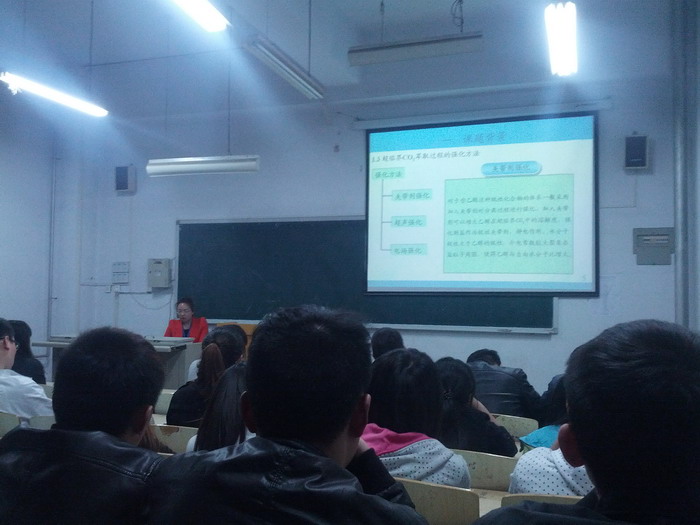 2013年4月10日,化学工程系在B408举行第二课堂活动——学术讲座。本次讲座由韩敬莉老师主讲。此次活动,由化学工程系副主任主持,共有38名学生参加。化工系副书记朱冰老师和马可颖老师听取了讲座。