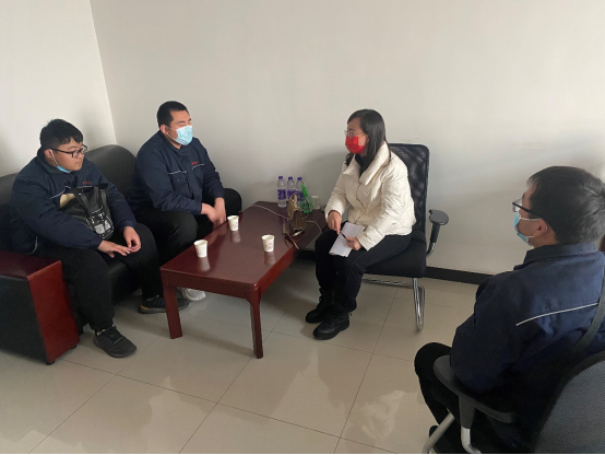 茹巧荣老师与实习学生代表进行交流,希望学生能够踏实工作,践行爱岗敬业的精神。学生表示通过实习自己认识到公司各项规章制度的规范性,体会到化工行业的重要性,为了更好地通过各项考核,平时对自己要求更加严格了,学到了知识,提升了技能。
