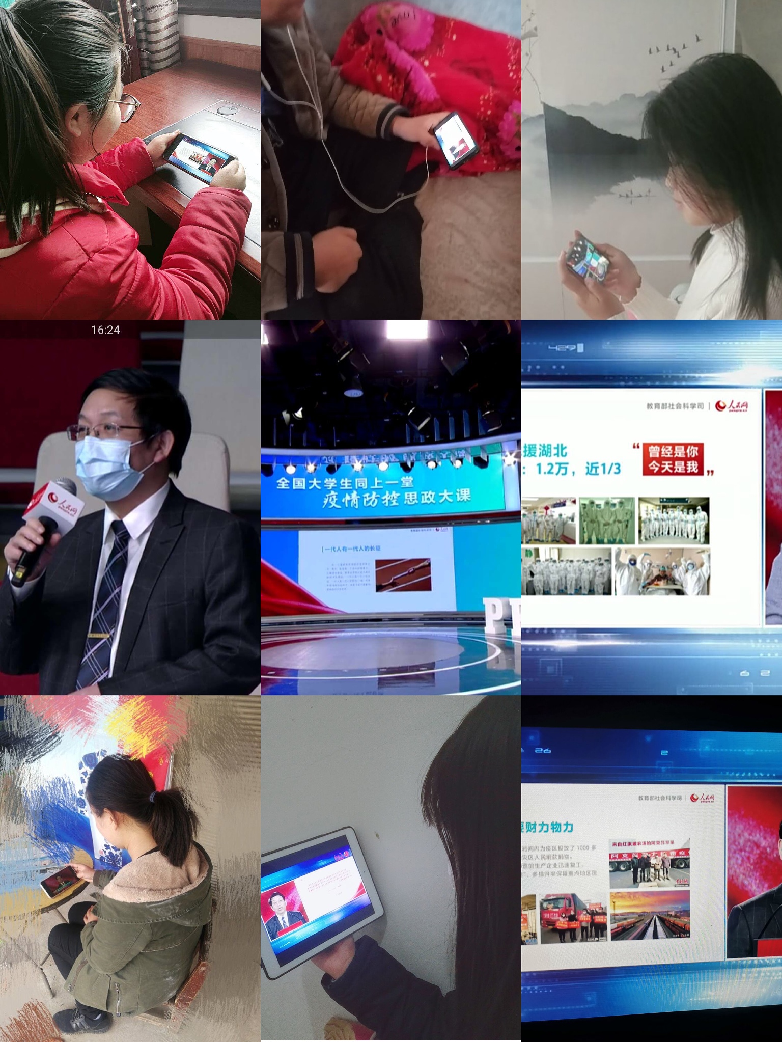 四位教授将疫情防控工作涌现的案例转化为鲜活课堂,既蕴含丰富的理论知识,又与新时代疫情防控的责任担当紧密结合,引发观看师生的强烈共鸣和热议。“通过学习,对中国共产党果断决策和和防控疫情、习近平总书记对本次疫情的科学决策、各级党组织参与疫情的防控积极性、我国医护人员的无私奉献、我国人民的服从大局意识,这些都体现了我党集中统一领导的显著优势。”蔡庄红书记谈及抗疫一线涌现出的动人故事深深感动着广大师生,传递出满满的正能量。付大勇老师说到:面对疫情这场不见敌人的战役,不论是90后还是00后,都体现出了勇于担当,不畏艰难的大无畏精神,这也说明了我们教育的成功。“作为当代大学生,我们的内心也是五味杂陈。看到了无数的人已悄然离开人间,见证了难过,沮丧,艰辛……但看了今天的讲座,让我很自豪的是我是中国人,生活在一个富强的国家,她的博大,责任与担当保护着我们每一个人,正所谓生于种花家,何其荣幸。”李功明同学观看完思政课,在之后的班会中发言到。