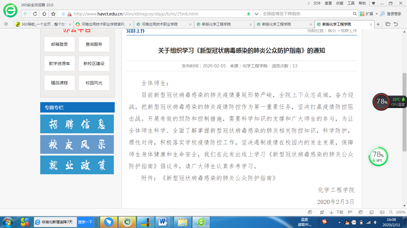 新冠肺炎疫情来势汹汹。“不论假期,不论身份,只要学生在哪里,我们就在哪里。”这是化学工程学院全体教师面对疫情,积极行动的真实写照。