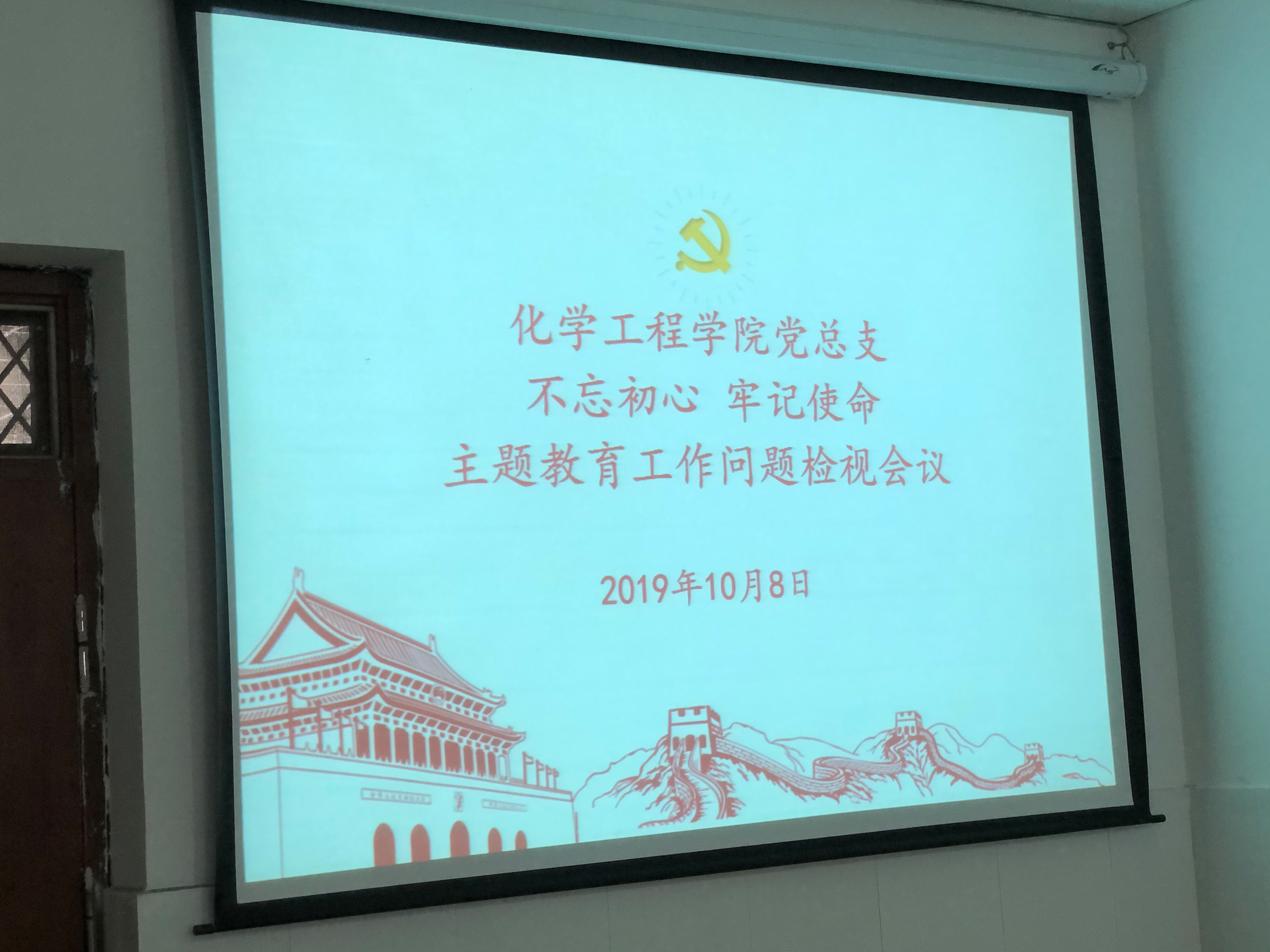 化学工程学院党总支于2019年10月9日在E205,召开“不忘初心、牢记使命”主题教育工作检视问题第一次反馈会议。会议由总支副书记朱冰主持。