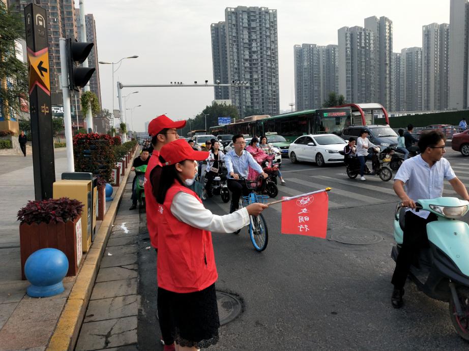 9月25日,化学工程学院党总支组织8名教工党员、8名学生入党积极分子参加“绿城使者”文明交通岗志愿服务活动。