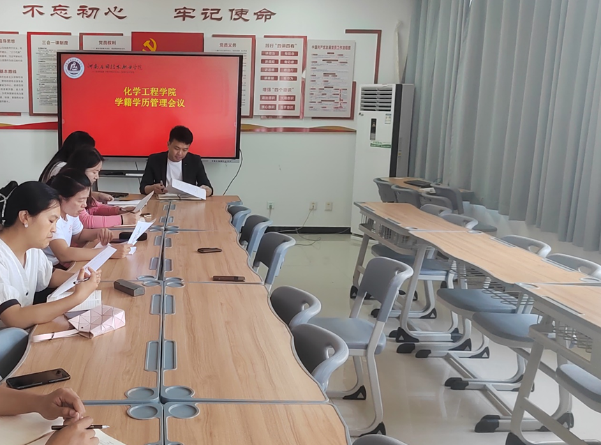 本次会议由化学工程学院常书记主持,常书记会议传达了《高等学校学生学籍学历电子注册办法》(教学〔2014〕11号、教电〔2021〕128号)文件精神,交流学籍学历注册和学籍管理工作经验,建立健全规范化高校学生管理制度体系和工作机制,提升管理人员的能力和水平。