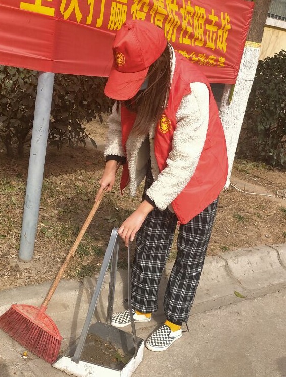食品2001班安静茹在漯河市南湾明珠小区,参与疫情防控工作,同时打扫小区卫生,清理卫生死角,消除“脏乱差”现象,宣传禁燃禁放烟花爆竹,为维护整洁卫生的城乡生活环境做出自己的贡献。
