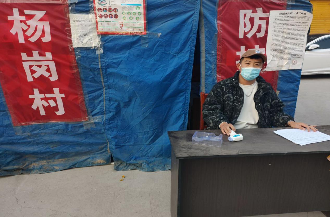 化工2001班李维涛在濮阳市台前县杨岗村防疫点,开展为返乡人员进行体温检测、登记工作。