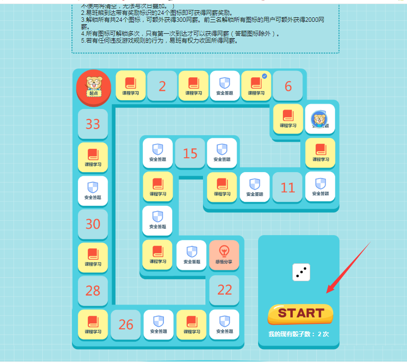 2、注册成功后,点击首页---“校园硬核正能量,网络安全共担当”。进入点击骰子,进行答题或者游戏。