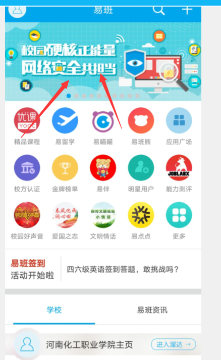 1、打开活动网址:www.yiban.cn(手机端),出现下载界面——易班APP,下载后注册,具体操作方法和网页版一样。