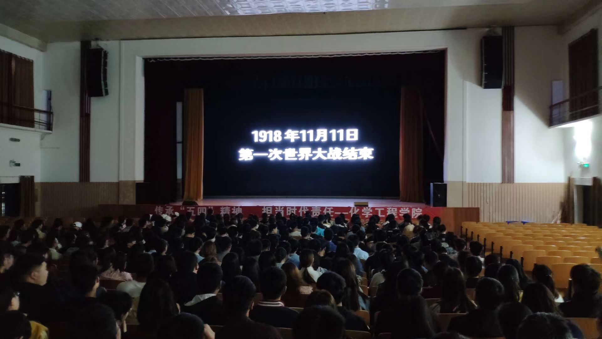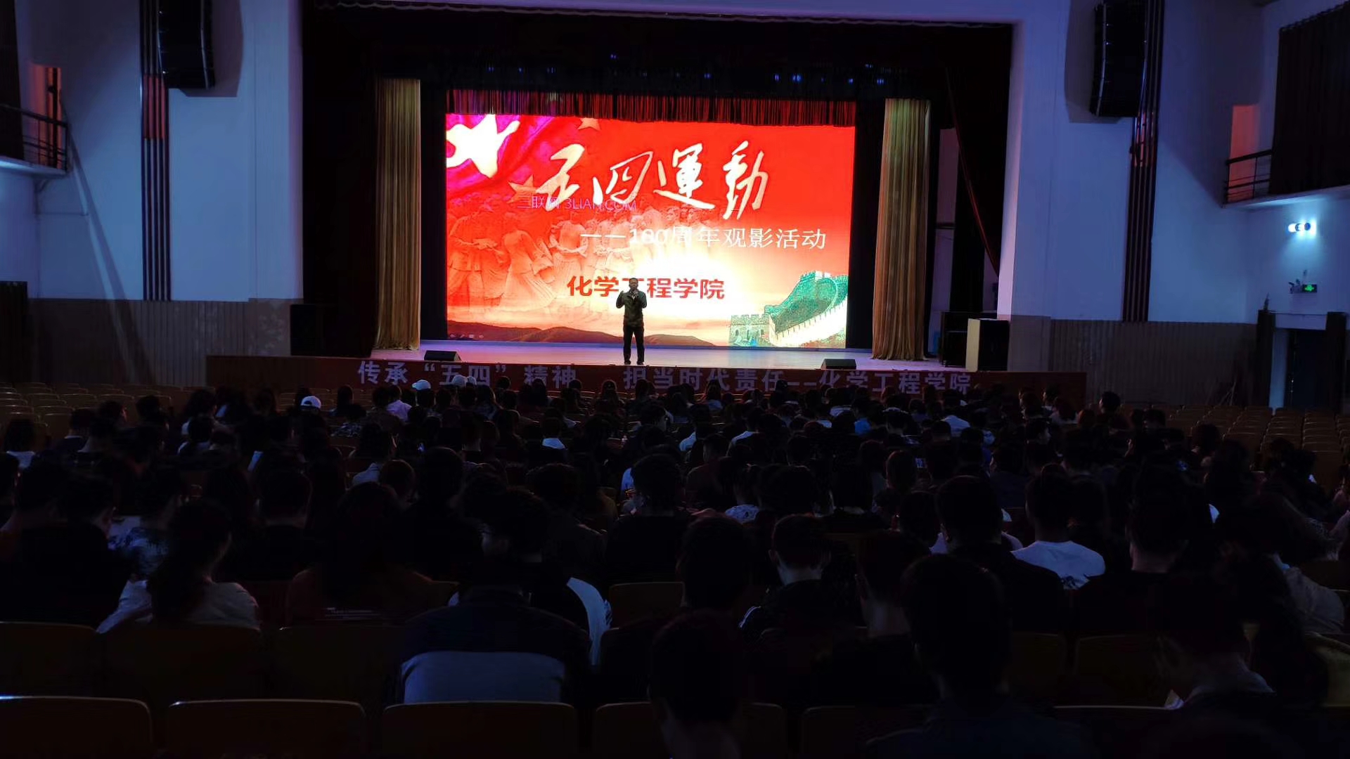 为深入学习贯彻习近平总书记系列重要讲话精神和治国新理念新思想新战略特别是青年工作思想,充分弘扬爱国主义精神,激励广大青少年在党的领导下为实现“两个一百年”奋斗目标而努力奋斗,4月27日晚化学工程学院组织全体同学开展五四青年节观影活动。本次观看电影《我的1919》。