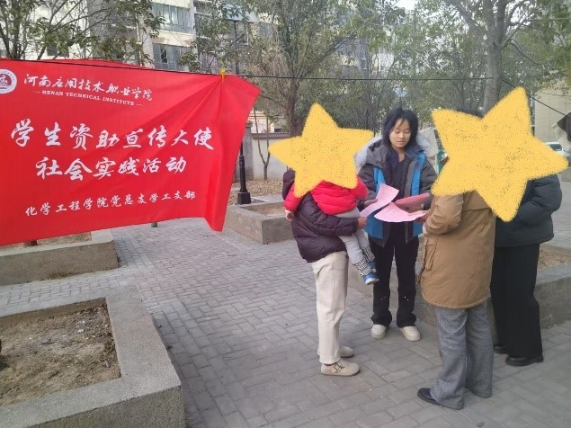 为进一步宣传国家资助政策及成效,发挥“学生资助宣传大使”的励志引领作用,打造资助育人品牌活动,激励广大受助学生奋发自强、成长成才,化学工程学院积极响应学校号召,选派朱浩菲、高新尧、刘宏威、刘淼、王梓涵5名同学担任“学生资助宣传大使”,于2025年寒假,利用大学生返乡期间开展“感恩资助心向党·政策宣传我来讲”的资助政策宣传社会实践活动。宣传大使们在各自社区和乡村进行集中宣传,通过发放纸质宣传材料现场讲解,向身边的亲友系统介绍国家资助理念和各类资助政策。