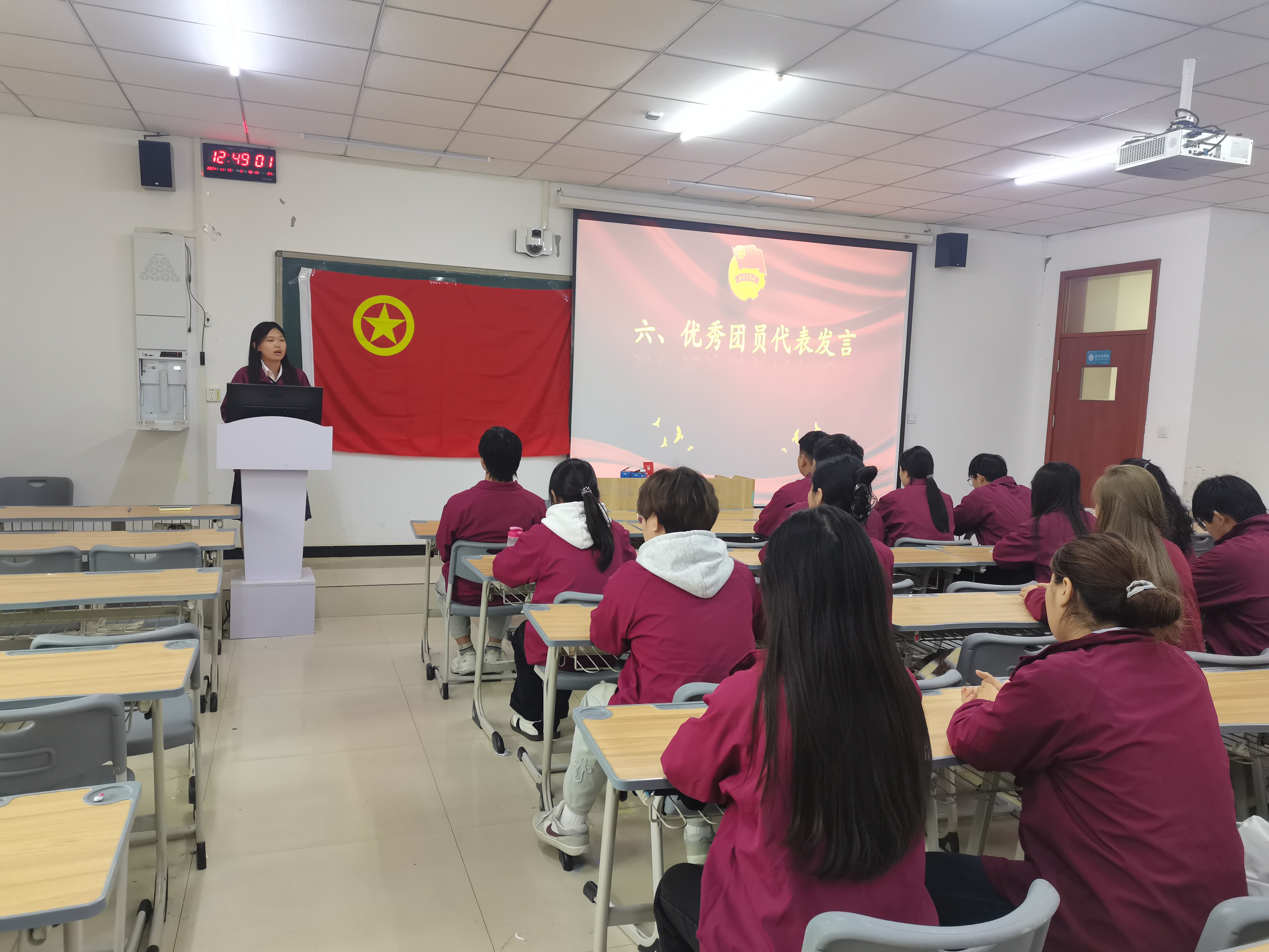 优秀团员代表王梦梦发言,分享了自己加入共青团的体会和成长经历,鼓励新团员们勤奋学习、积极工作,努力践行共青团员的光荣职责。