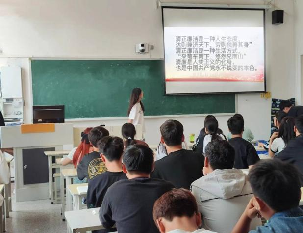 在团课学习中,各班团支部书记带领大家一同学习中国廉洁人物的故事,一起观看反腐倡廉小品和大学生反腐微电影等,通过感悟生动的故事和视频情景,同学们更加深刻地认识到了“廉洁奉公”这一传统美德的重要性。最后,各团支部还结合《中国共产主义青年团纪律处分条例(试行)》,共同就相关内容进行学习交流讨论,有的同学还结合自己的生活实际,发表了对拒腐防变的认识,大家在研讨中进一步加深了对文件精神的理解,更加体会到“腐败”这一现象对青年大学生的危害以及反腐工作的实施对国家和人民的重要意义。