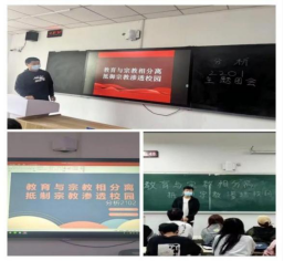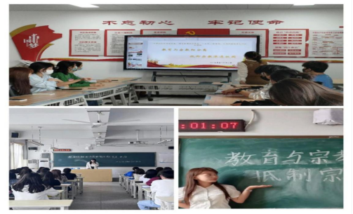 此次活动以线上+线下形式开展。各班团支部开展了“教育与宗教相分离 抵御宗教渗透校园”主题团日活动,让同学们认识到国家宗教政策以及某些宗教对当代大学生的影响,进一步强化了反对民族分裂和维护祖国统一的民族意识。大家纷纷表示,作为新时代青年要大力弘扬爱国主义,培育民族精神,增强民族自豪感,把爱国主义精神转化为爱学校、爱班级、爱学习的热情。本次线上宗教知识竞答以习近平总书记关于宗教工作的重要论述、习近平法治思想、《宗教事务条例》等为主要内容,向师生近距离宣传党和国家的民族宗教政策及法律法规。竞赛设置了一、二、三等奖,全院共有553名师生参与了知识竞赛。