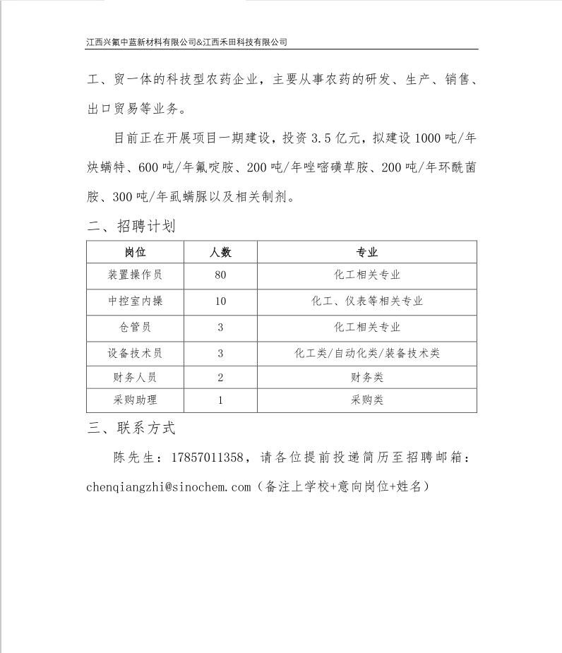 上一条:中化蓝天氟材料有限公司2021年招聘简章 下一条:湖北中蓝宏源新能源材料有限公司简介